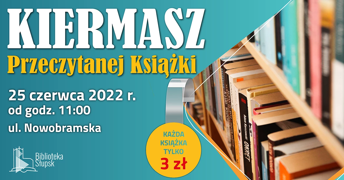 Zapraszamy na Kiermasz Przeczytanej Książki, który odbędzie się dnia 25 czerwca 2022 roku na ul. Nowobramskiej (od godziny 11.00).