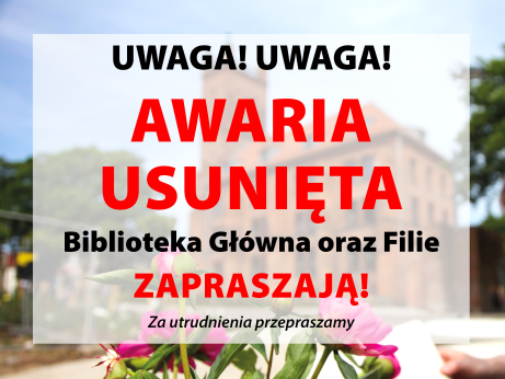 *AKTUALIZACJA* Drodzy Czytelnicy, zapraszamy Was już do naszej Biblioteki Głównej oraz Filii. AWARIA USUNIĘTA!