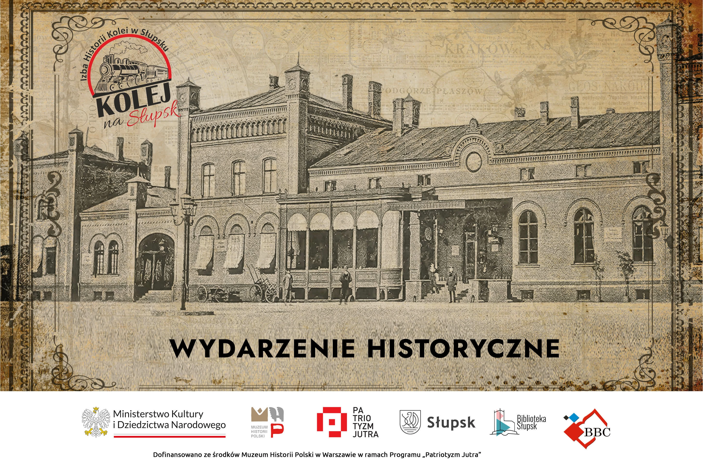 Wydarzenie odbyło się w ramach realizacji projektu „Kolej na Słupsk”, finansowanego z Muzeum Historii Polski z programu „Patriotyzm Jutra”; Typ kwalifikacji: działania edukacyjno-animacyjne aktywizujące uczestników poprzez współdziałanie i interakcję, m.in. warsztaty, akcje artystyczno-historyczne etc.; Wkład własny projektu – Miasto Słupsk.