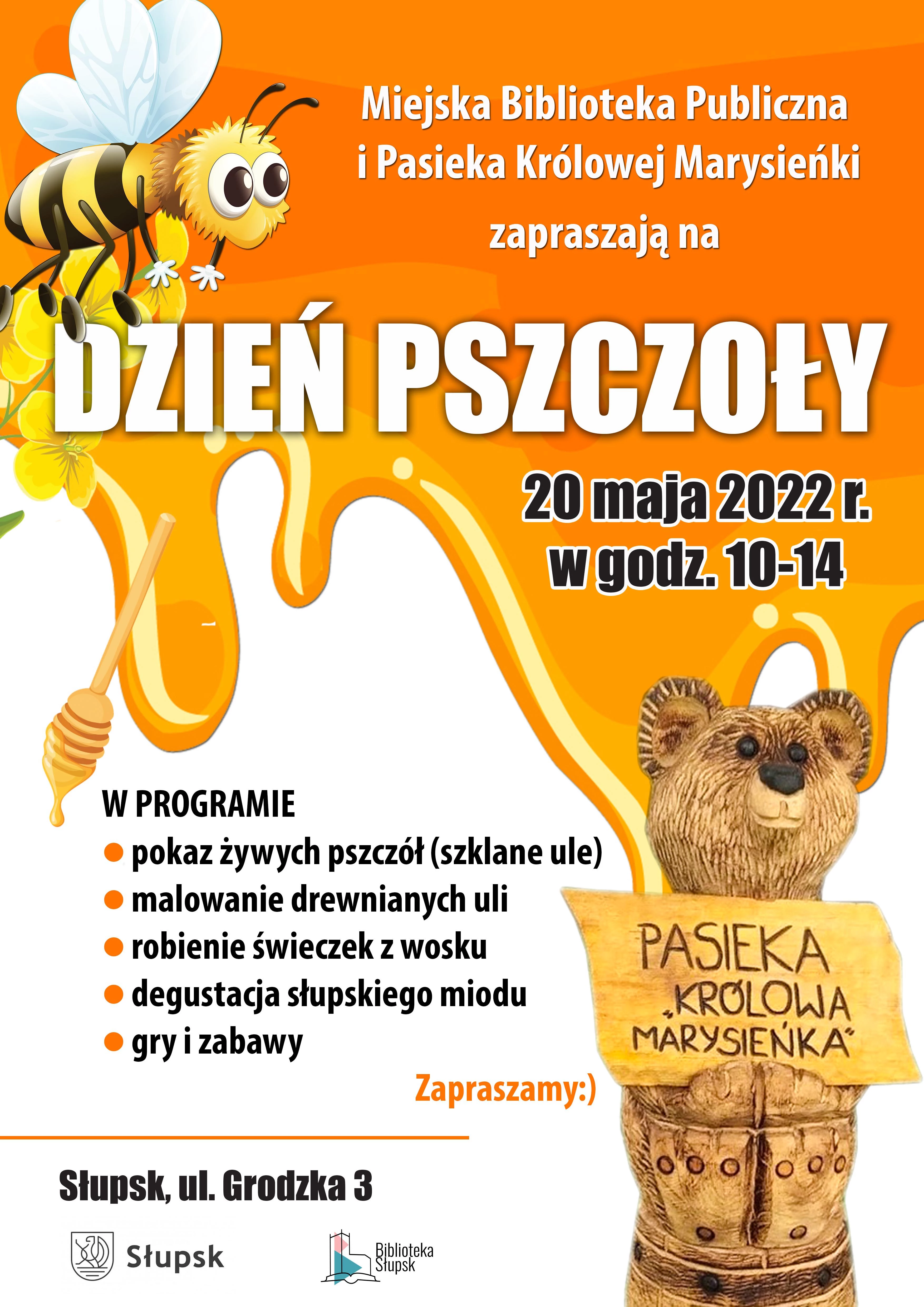 Z okazji Światowego Dnia Pszczół, czyli 20 maja 2022 r., w godz. 10-14, Miejska Biblioteka Publiczna oraz Pasieka Królowej Marysieńki przybliżą dzieciom świat pszczół.