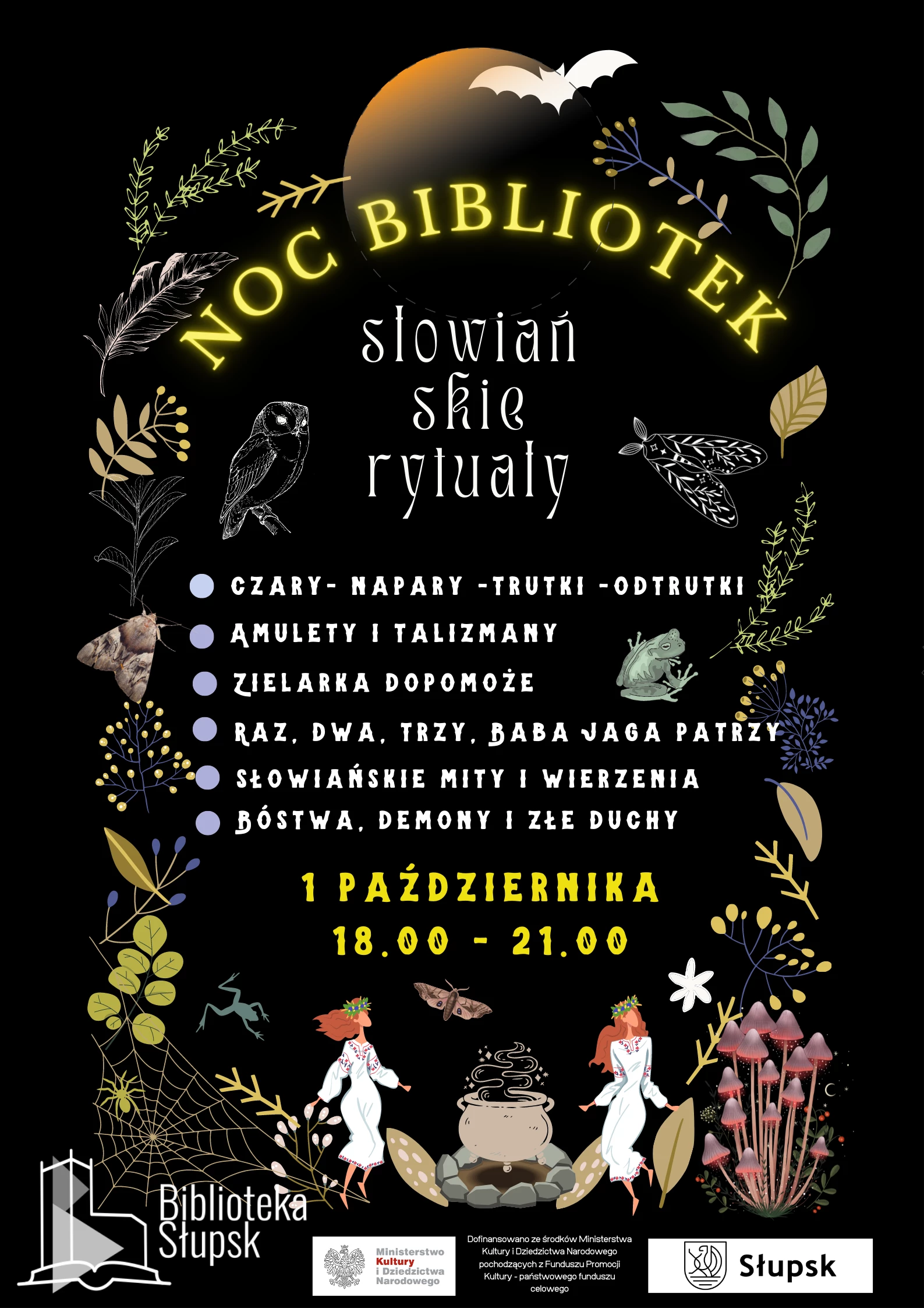 Uczestnicy Nocy Bibliotek będą mogli wkroczyć do magicznego świata słowiańskich wierzeń. Każdy zainteresowany skosztuje magicznych naparów, zagłębi się w mitologię słowiańską, utworzy swój ochronny amulet, a nawet pozna prawdziwą zielarkę, która poprowadzi warsztaty z rozpoznawania ziół.