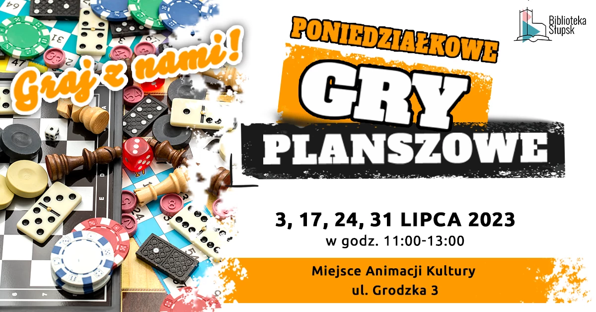 Zapraszamy na Poniedziałkowe GRY PLANSZOWE! (3, 17, 24 i 31 lipca 2023 r., w godz. 11:00-13:00).