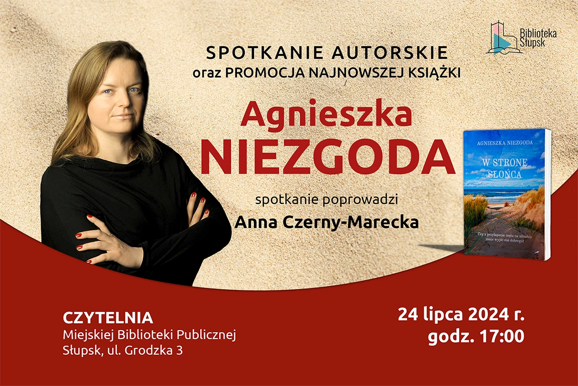 W środę, 24 lipca 2024r., o godzinie 17:00, zapraszamy do nowo wyremontowanej Czytelni MBP przy ul. Grodzkiej 3 w Słupsku, na spotkanie z Agnieszką Niezgodą i jej najnowszą powieścią "W stronę słońca", której patronem jest nasza biblioteka. Spotkanie poprowadzi Anna Czerny-Marecka.