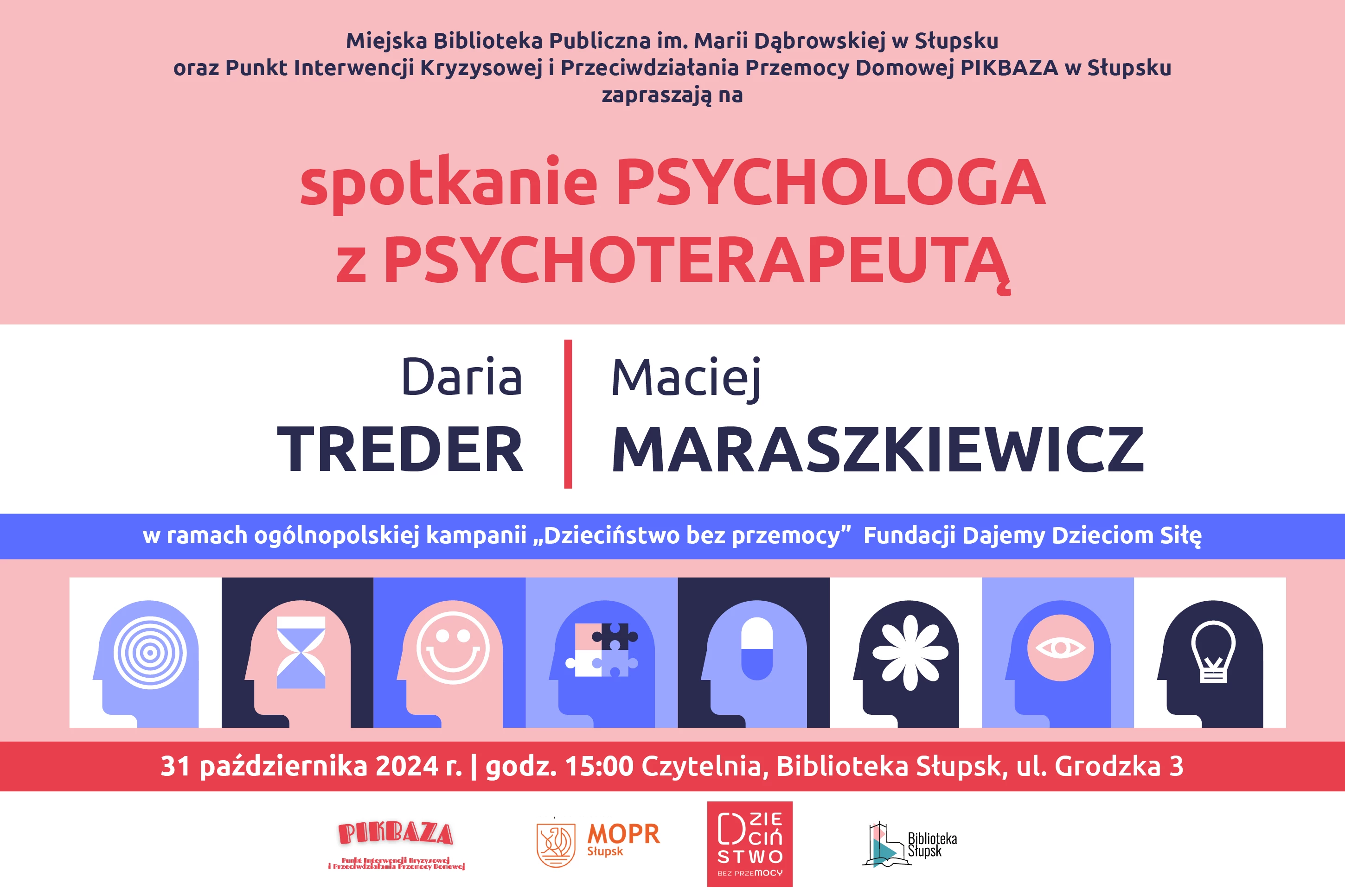 31 października 2024 r. o godz. 15:00 w Czytelni Miejskiej Biblioteki Publicznej w Słupsku odbędzie się spotkanie w ramach ogólnopolskiej kampanii „Dzieciństwo bez przemocy” organizowanej przez Fundację Dajemy Dzieciom Siłę.