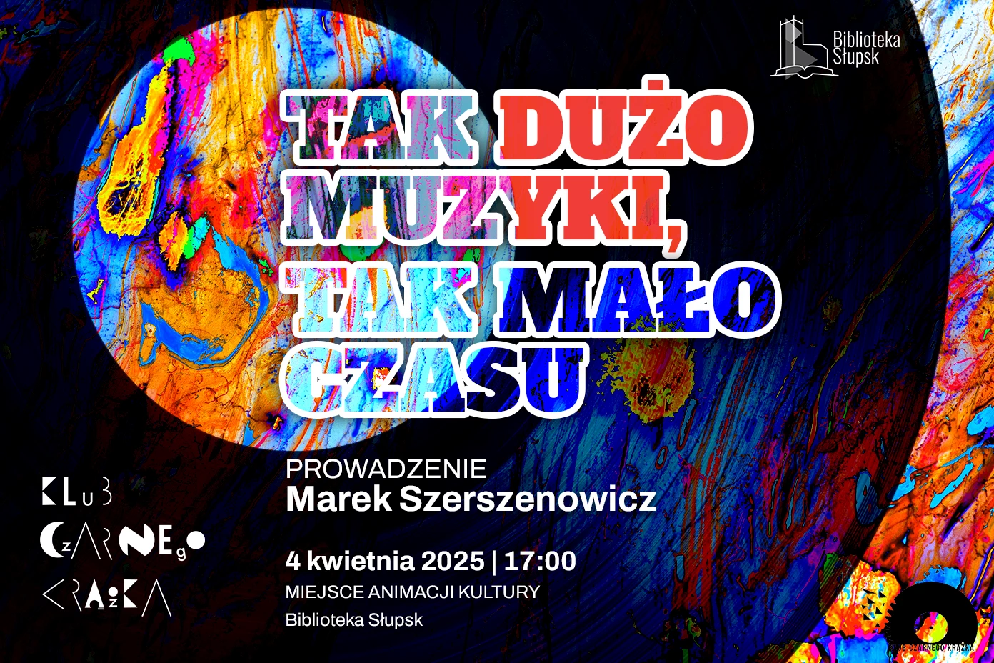 Serdecznie zapraszamy na kolejne spotkanie Klubu Czarnego Krążka. Naszym gościem będzie Marek Szerszenowicz, który poprowadzi swój autorski program pod nazwą: Tak dużo muzyki, tak mało czasu.