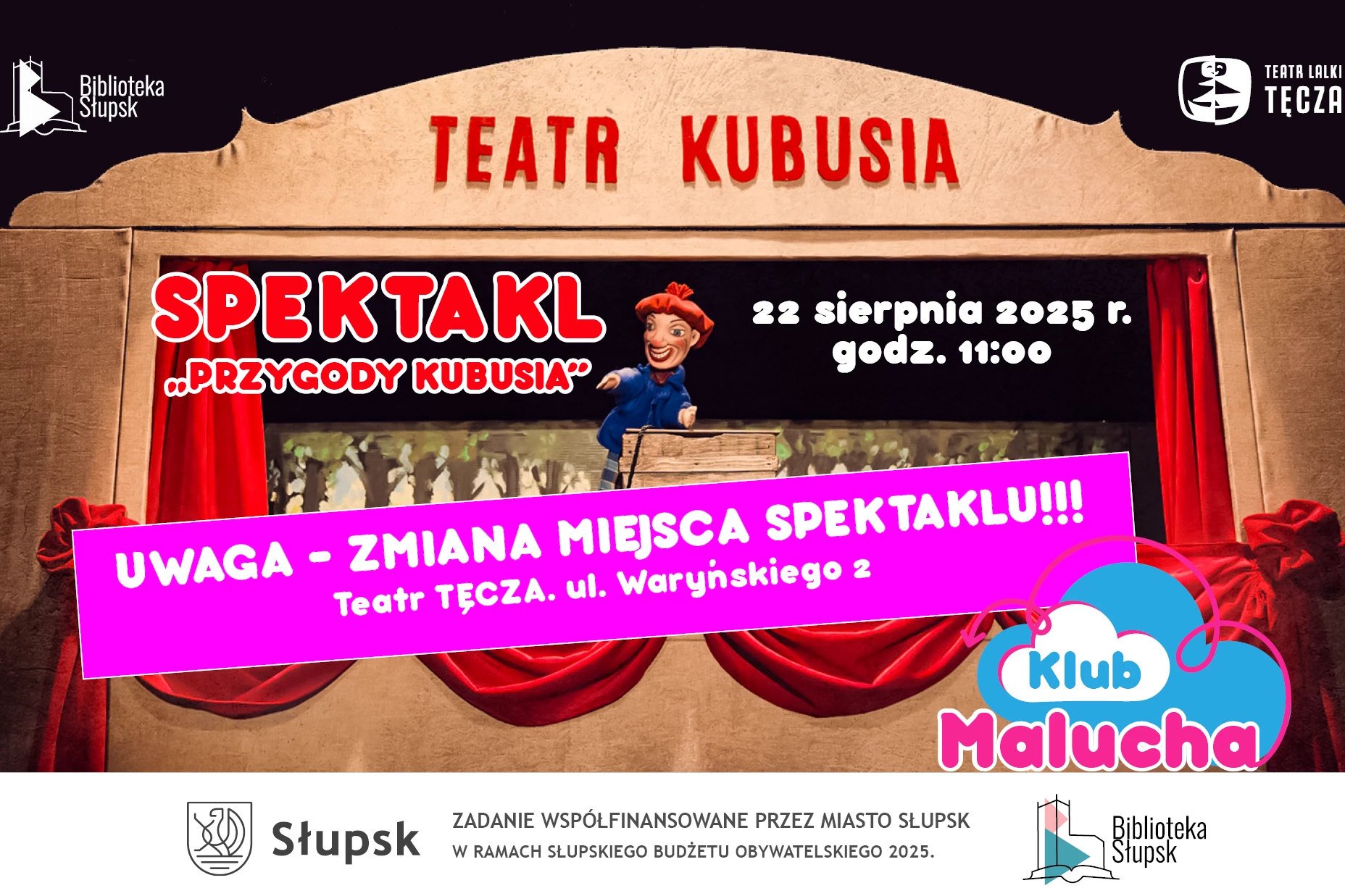 Spektakl odbywa się w ramach Budżetu Obywatelskiego na rok 2025 (zadanie społeczne "Klub Malucha")
