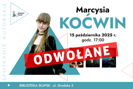 Z przykrością informujemy, że zaplanowane na środę, 15 października 2025 r., spotkanie z Marcysią Koćwin zostało odwołane.