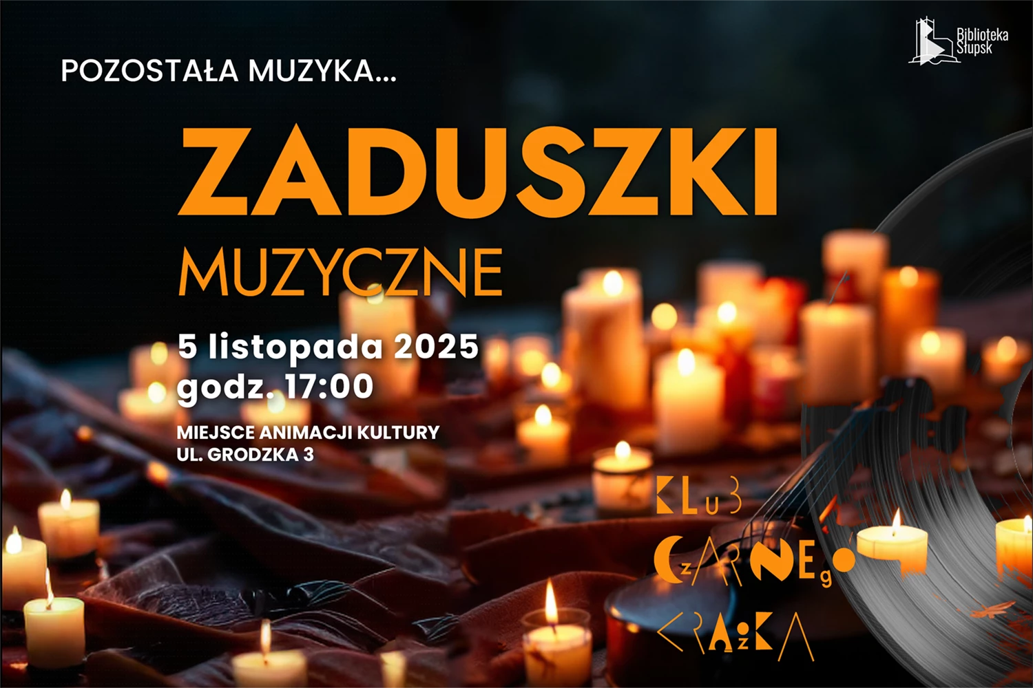 Serdecznie zapraszamy na spotkanie Klubu Czarnego Krążka, poświęcone muzykom zmarłym w latach 2024-2025. Muzyczne Zaduszki tym razem odbędą się w środę 05 listopada 2025 roku o godzinie 17:.00.