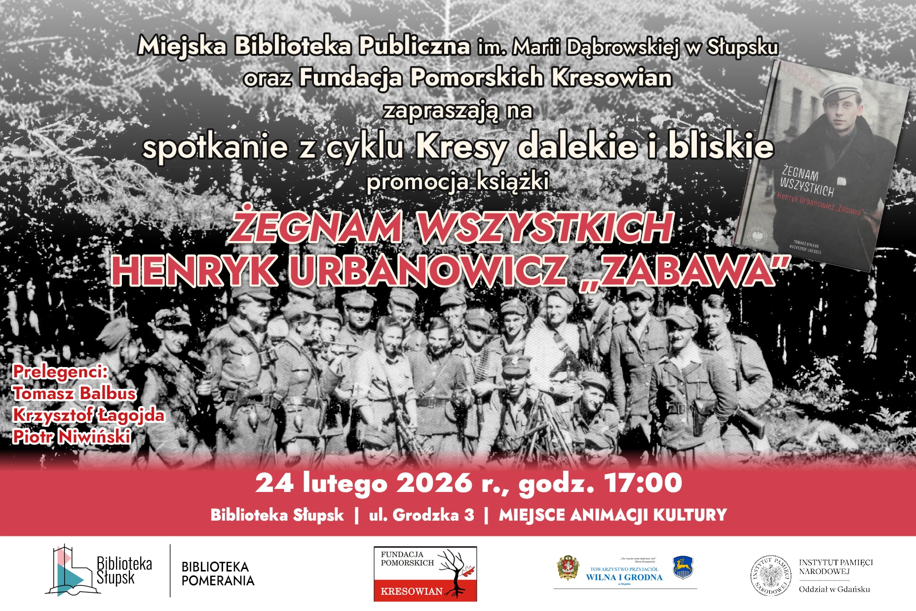 Promocja książki odbędzie się z okazji Narodowego Dnia Pamięci Żołnierzy Wyklętych – państwowego święta, obchodzonego corocznie 1 marca. Partnerem wydarzenia jest Towarzystwo Przyjaciół Wilna i Grodna w Słupsku oraz Instytut Pamięci Narodowej Oddział w Gdańsku.
