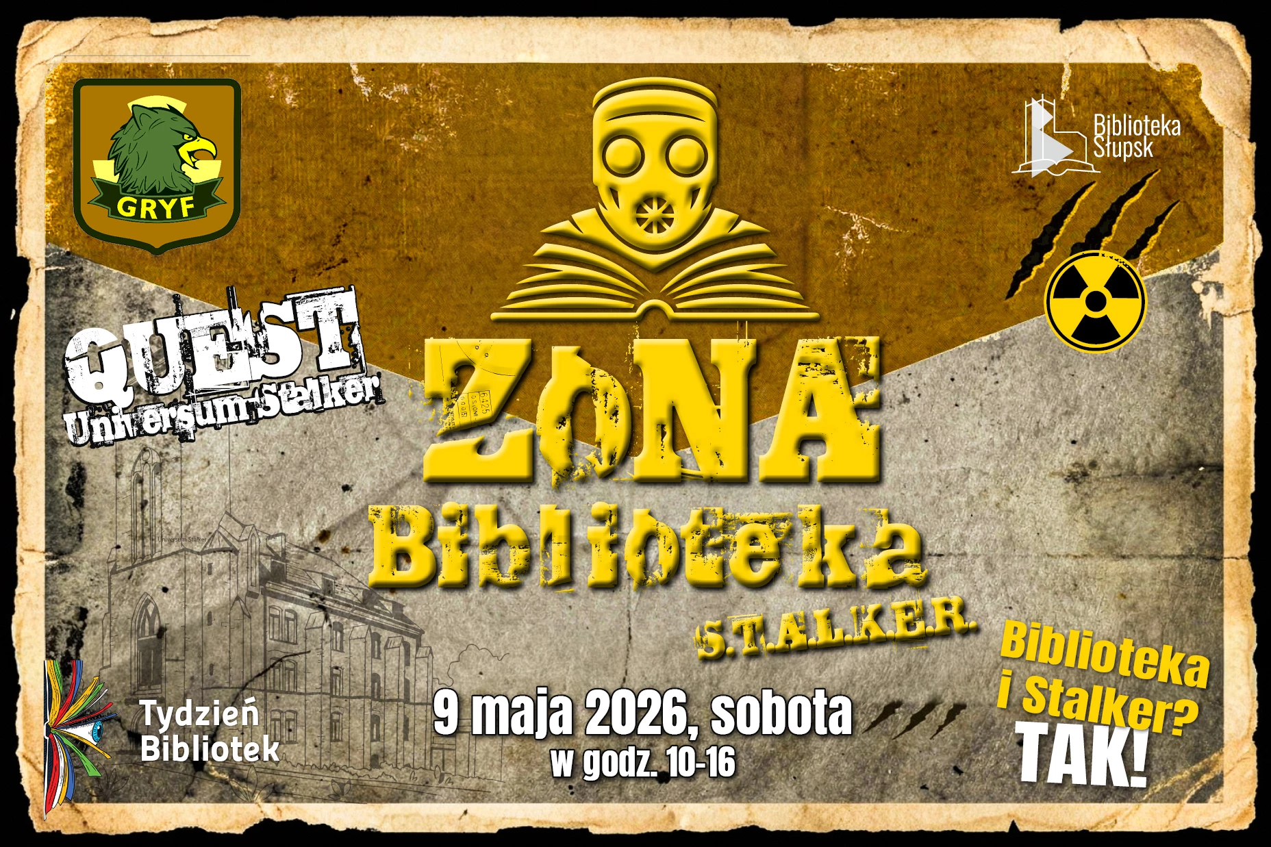 eśli nie wiecie o co chodzi, to już tłumaczymy – S.T.A.L.K.E.R. to seria gier komputerowych oraz ponad 80 książek. Akcja serii rozgrywa się w latach 2011–2012 na fikcyjnym obszarze wokół Czarnobylskiej Elektrowni Jądrowej zwanym Zoną. Po 1986 na jej terenie zaczęły pojawiać się tajemnicze i niezwykle cenne artefakty, które przyciągnęły ludzi zwanych stalkerami. ZONA Biblioteka S.T.A.L.K.E.R. jest wydarzeniem, na którym wraz z Frakcją Gryf chcemy przybliżyć uczestnikom uniwersa, w których występują stalkerzy, a także samą Bibliotekę. Nie zabraknie wystawy replik broni palnej oraz gry łączącej Bibliotekę z tym uniwersum.